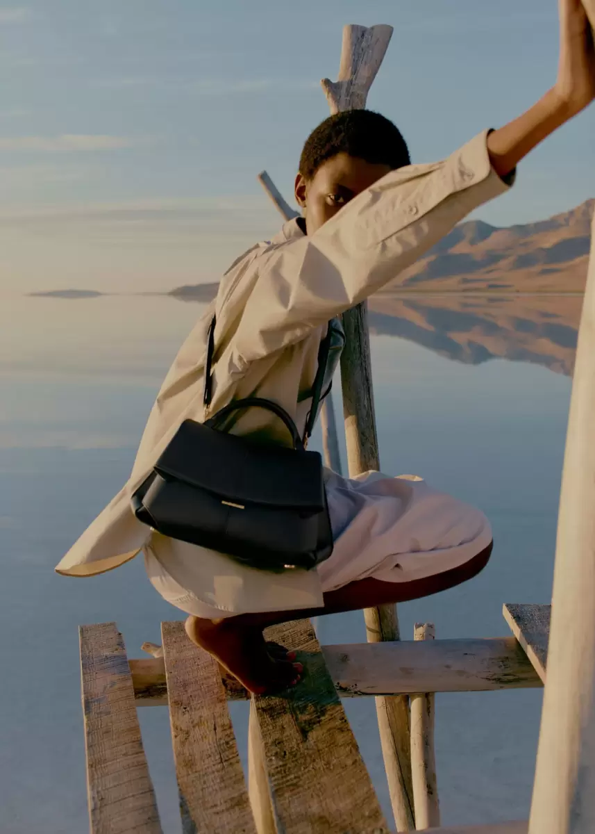 • Polène branded clasp and organically designed bottom studs bearing the Polène logo.
