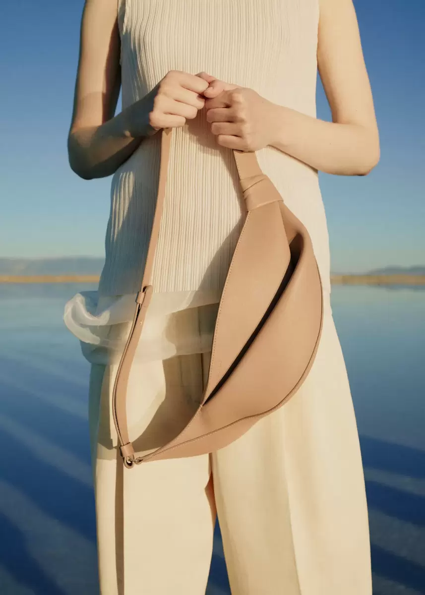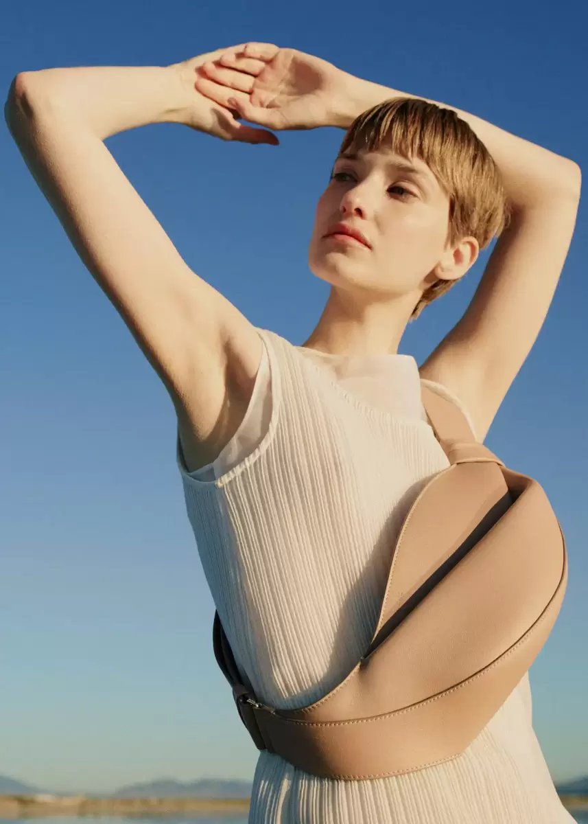 Cut from nappa leather, the Neyu model features draped leather structured around a central fold. Its pattern is shaped to hug the body and move with it throughout the day’s activities. Its wide shoulder strap adjusts for wearing the bag crossbody or over the shoulder.