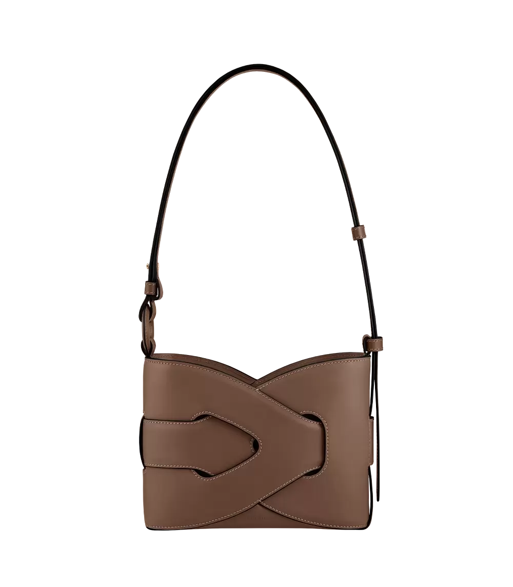 Composed of two matching and intertwined leather modules, the “Nodde” model is a bag with interlaced lines, highlighted by meticulous stitching and perfect symmetry.