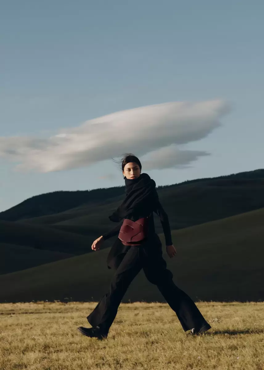 The “Nodde Hobo,” whose name echoes the French word for “knot,” is made up of two perfectly symmetrical, intertwined leather modules. Its beveled design accentuates its dynamic design and its base, set into the main body of the bag using a distinctive assembly technique.