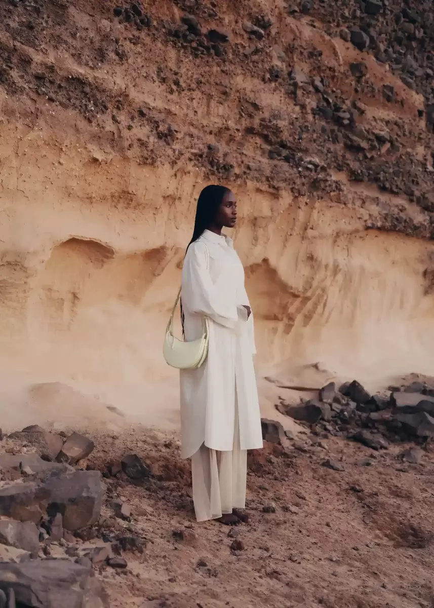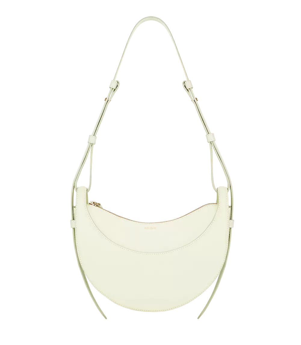 With its rounded shape, foam padding, and hand-stitching, the “Numéro Dix” is a nod to the equestrian codes of saddlery. Its half-moon design highlights juxtaposing curves.