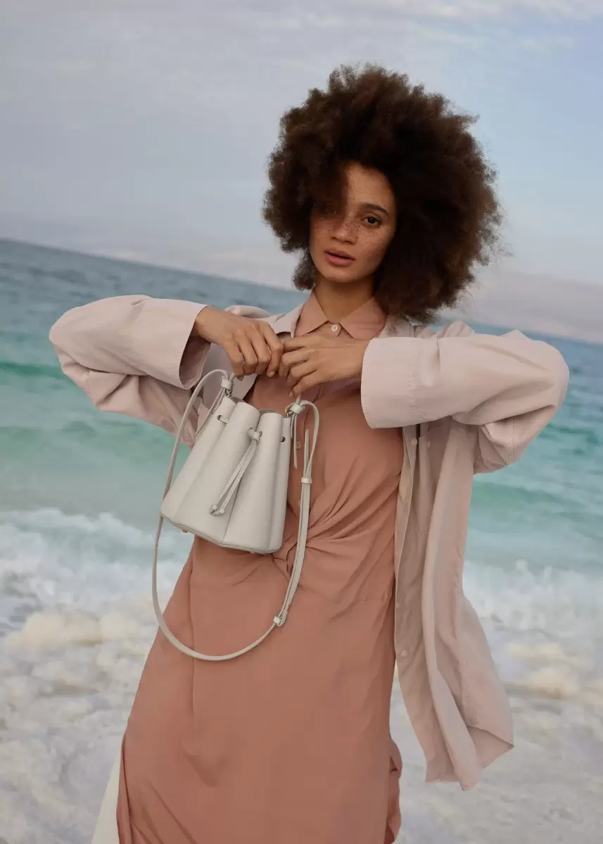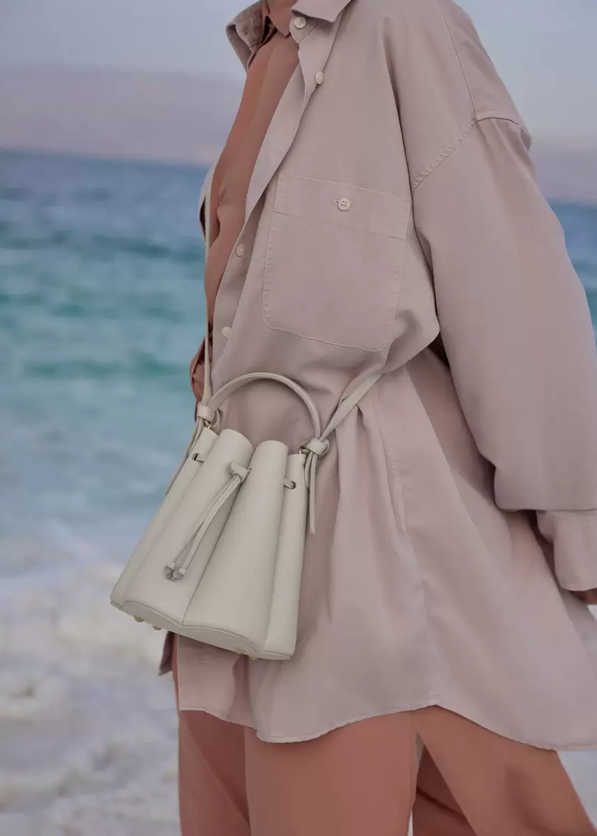The “Numéro Huit Mini” is a compact, flower-like bucket bag. Its sculptural lines are obtained using waves of leather to create a fluted look.