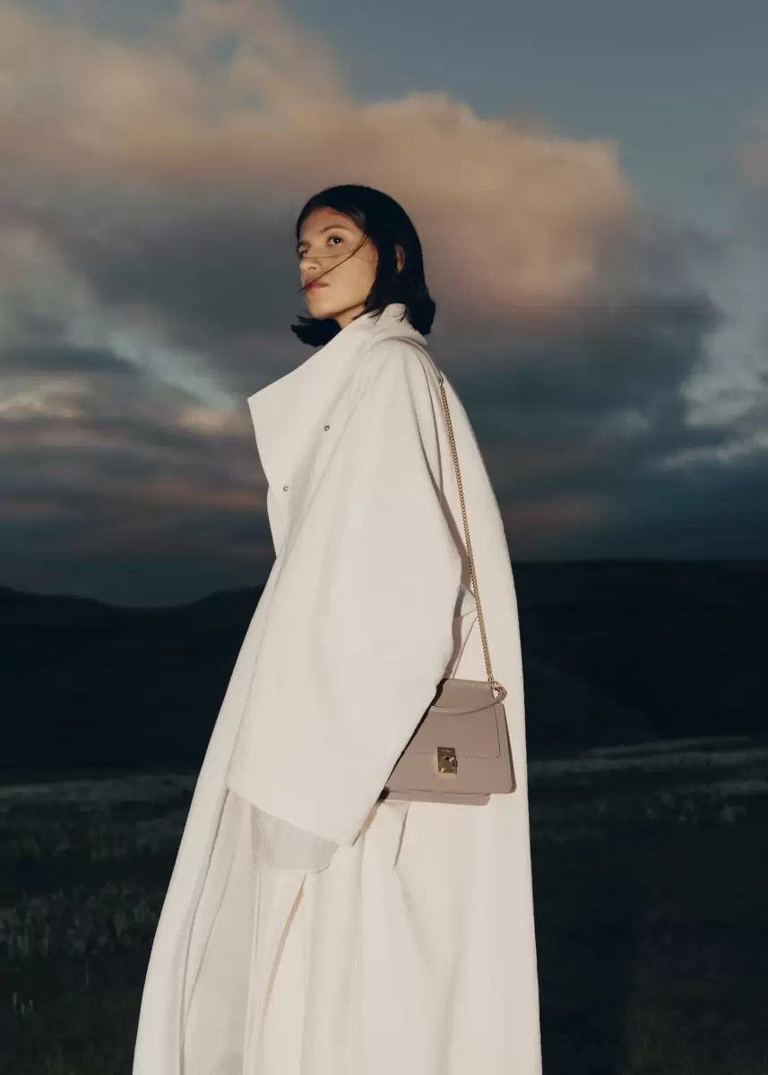 The “Numéro Sept Mini” is a structured bag that combines leather and meticulous jewelry work with its signature clasp, Polène-engraved snap hooks, and chain shoulder strap.