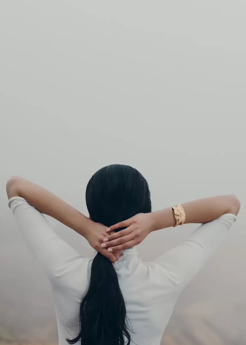 Worn around the wrist, the Eroz cuff’s rock-like shape contrasts with the fluidity of its branched asymmetry.